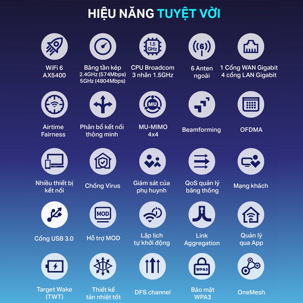 Máy tính & Laptop > Thiết Bị Mạng > Bộ Phát Wifi || [Mã ELMALL1TR giảm 5% đơn 3TR] Bộ Phát Wifi TP-Link Archer AX73 Wifi 6 Gigabit Băng Tần Kép AX5400Còn hàng