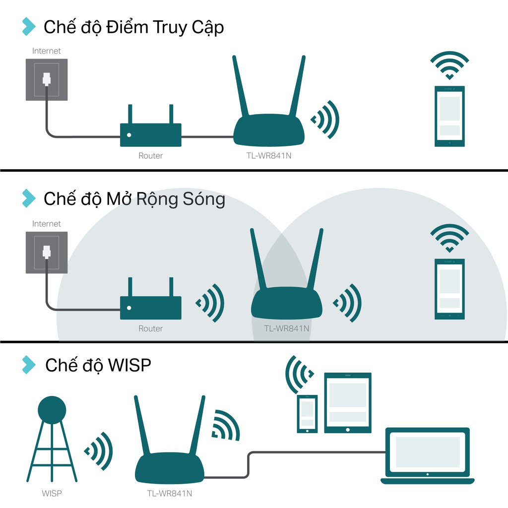 3 - Chế độ Mở Rộng Sóng (RE): Tăng cường vùng phủ Wi-Fi hiện có trong phòng bạn