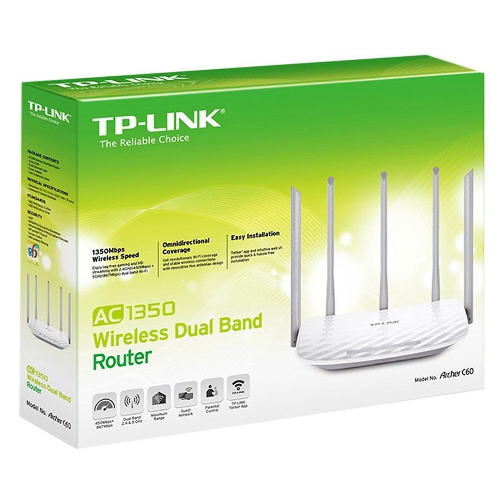 Bộ Phát Wifi TPLink Archer C60 AC1350 - Router Wifi Băng Tần Kép 5 Ăngten - Hàng Chính Hãng bảo hành 24 tháng