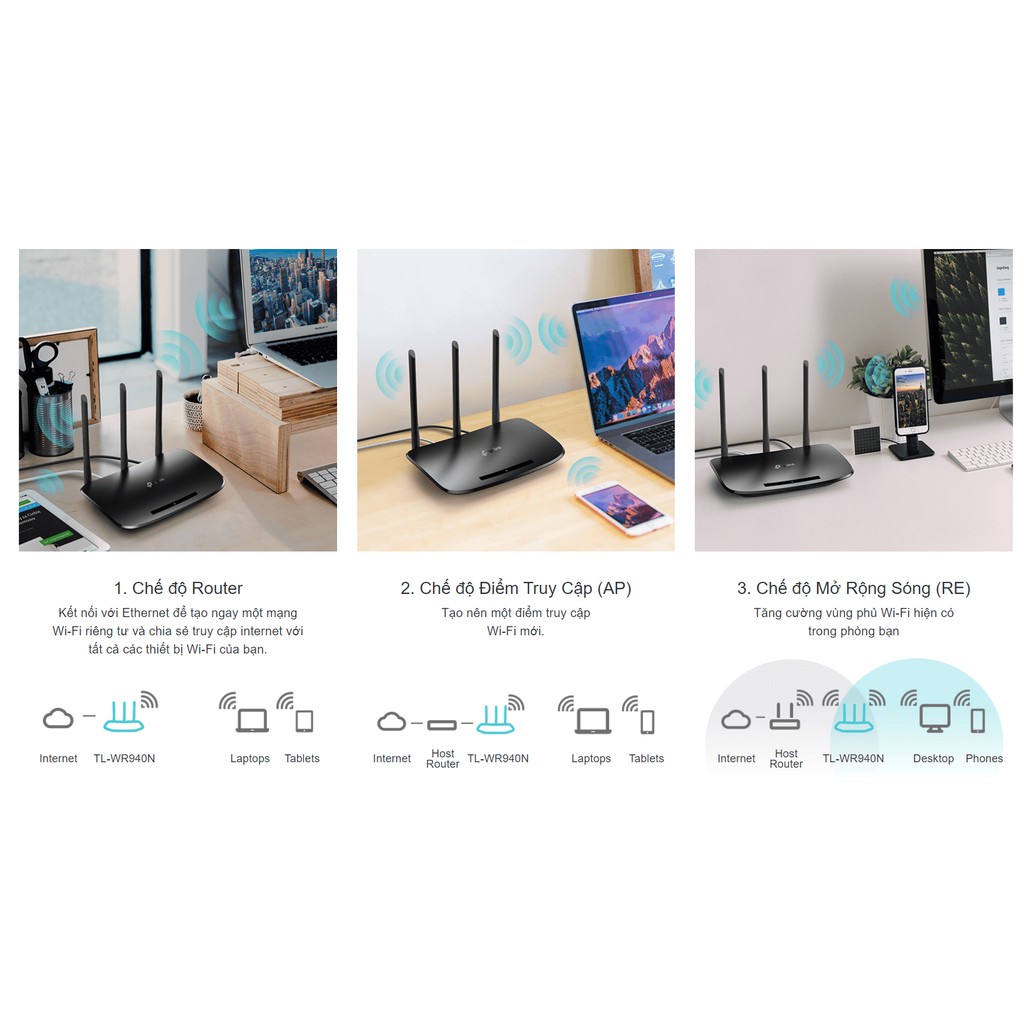 Bộ phát WiFi TPlink WR 940N 450Mbps - 3 Anten- Hàng Chính Hãng 100%, Bảo Hành 24 tháng