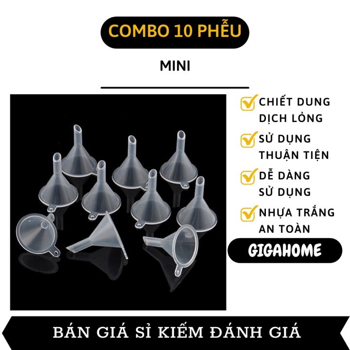 Phễu Mini GIGAHOME Combo 10 Phễu Nhựa Rót Chiết Dung Dịch, Nước Hoa Vào Lọ 5ml, 10ml 9402