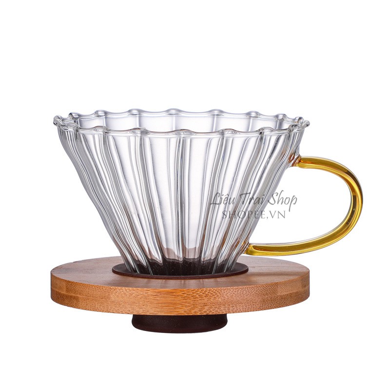 Phễu pha cà phê cafe V60 thuỷ tinh Pour over drip chemex giá gỗ kèm gioăng siliconeDùng pha cà phê Pour over, drip
