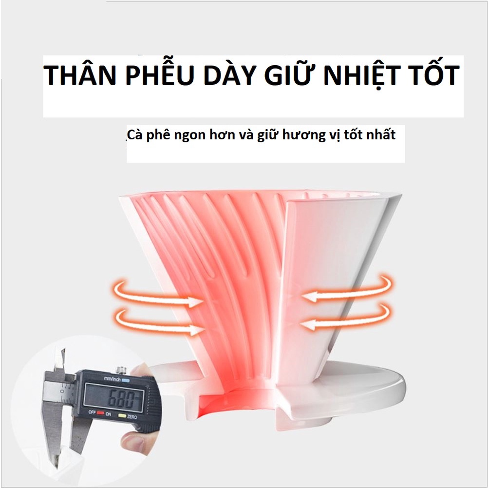 - Chất liệu phễu V60 được làm từ gốm chịu nhiệt độ cao có khả năng giữ nhiệt tối đa.