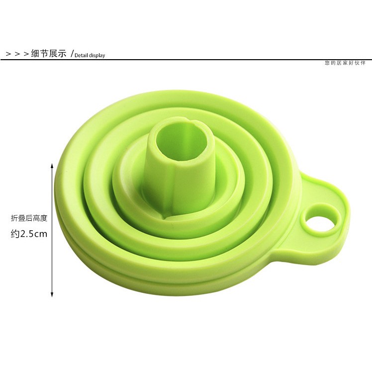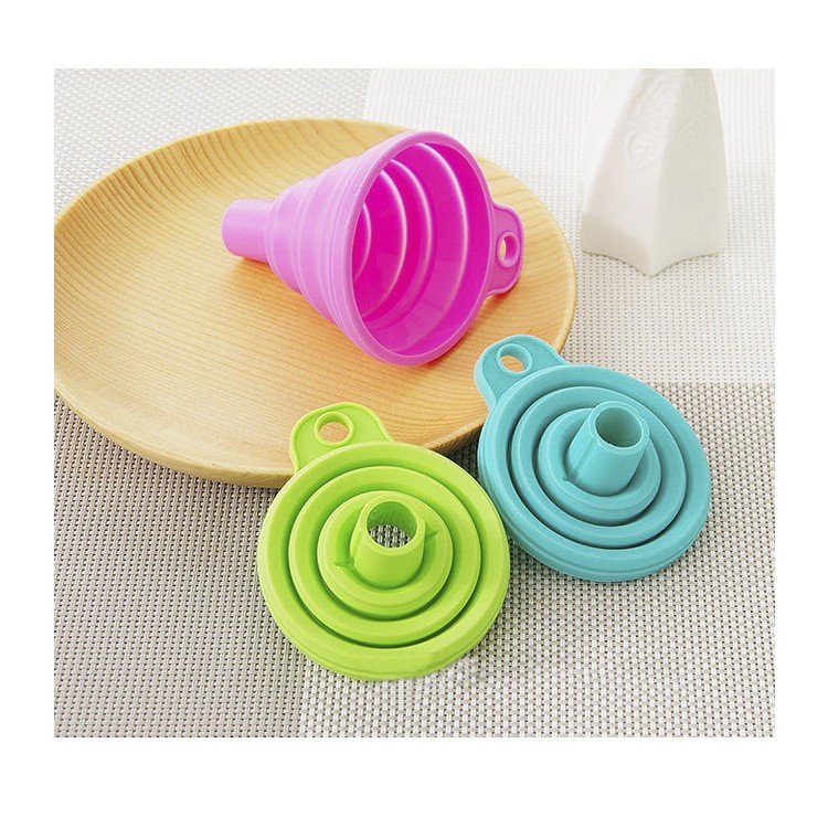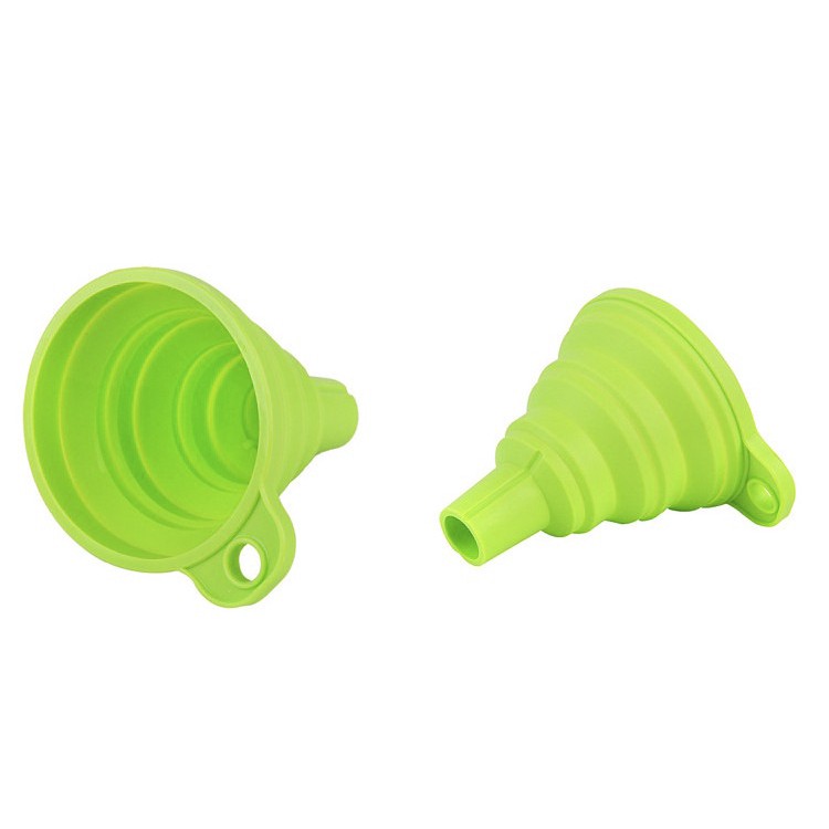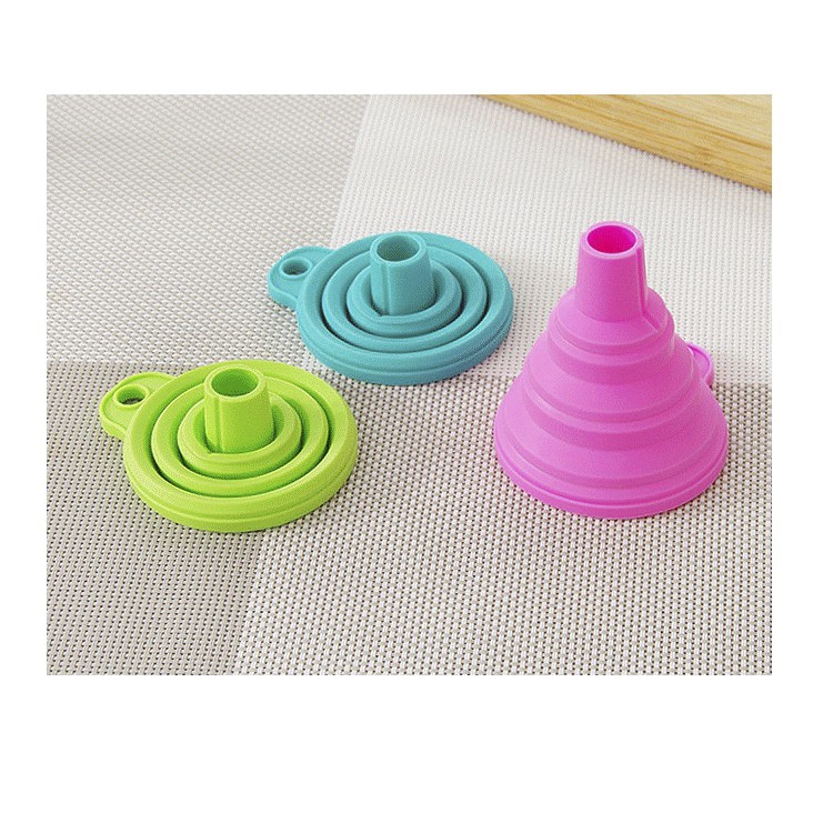 Phễu silicon gấp gọn tiện dụngPhễu là một vật dụng rất phổ biến và vô cùng cần thiết của các gia đình; được sử dụng với nhiều mục đích khác nhau: chiết dầu ăn, mắm, tương, mật ong... ra chai nhỏ thuận tiện cho việc sử dụng hằng ngày; đổ nước cam, nước ép,... vào chai để mang theo đi học đi làm.Phễu silicon so với phễu nhựa truyền thống gần như nhau, đồng thời có rất nhiều ưu điểm:Vẫn chịu được nhiệt độ rất cao tới 230 độ CDễ dàng và an toàn cho việc chùi rửa hằng ngày, không để lại vệt khó chịuSau khi sử dụng có thể gấp gọn lại, không tốn diện tích