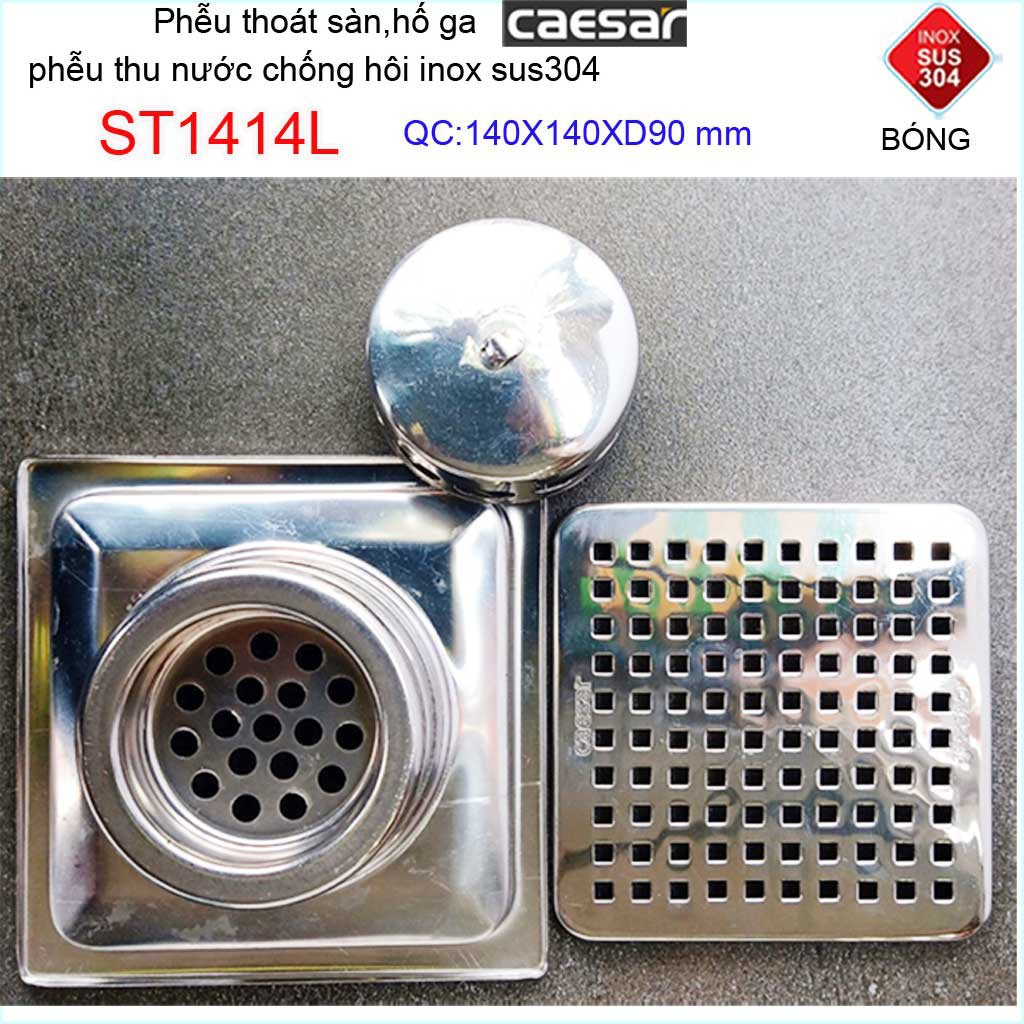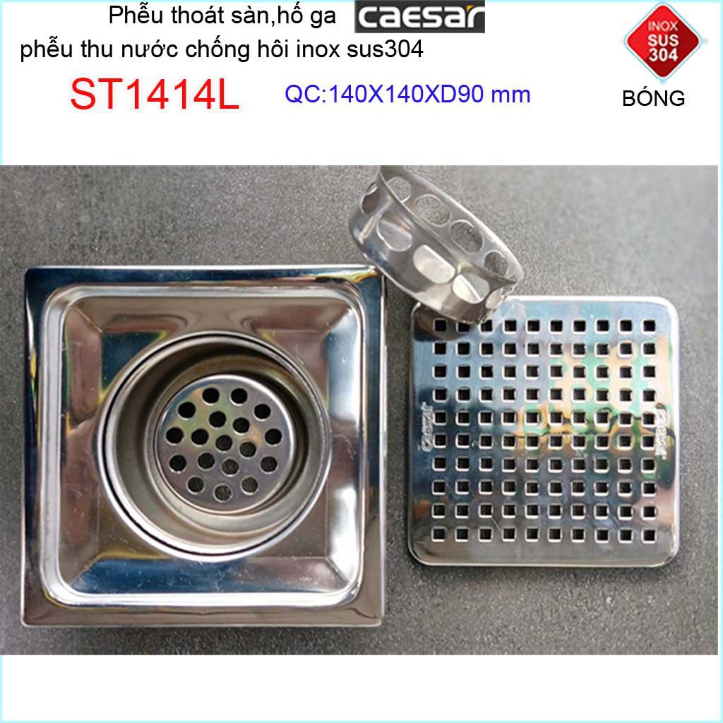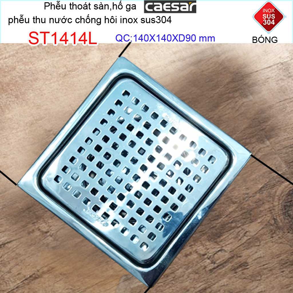 Phễu thoát sàn Caesar, chống mùi hôi Inox 304 caro, hố ga Caesar 14x14cm Phi 60-90 cao cấp