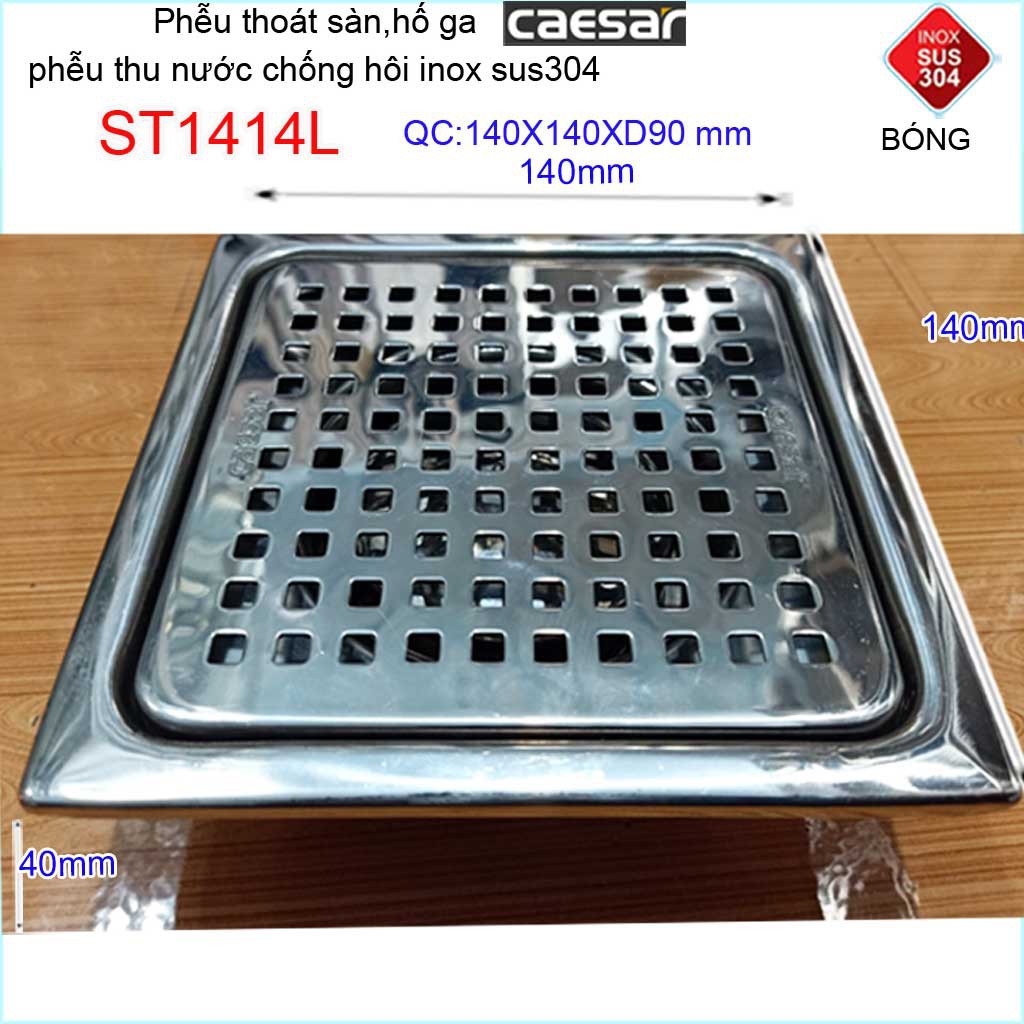 Thông tin chi tiết sản phẩm:Thoát sàn Caesar, phễu thoát sàn chống mùi hôi Inox 304 caro, phễu thoát nước Caesar 14x14cm ống D60mm và D90mm
