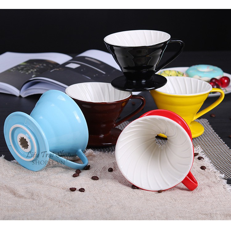 Phễu v60 sứ có quai pha cà phê cafe giấy lọc pour over dip brew