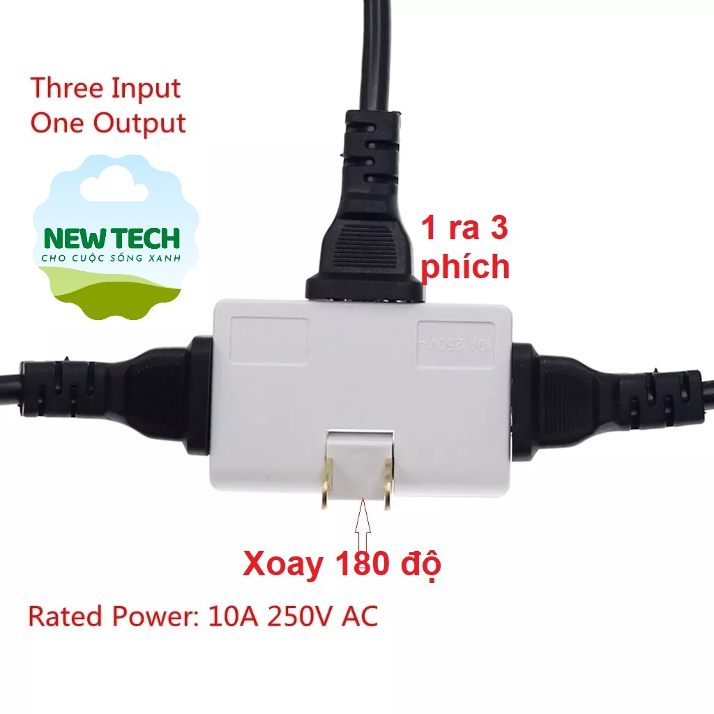 - 1 phích cắm ra 3 ổ tiện dụng, có thể gập vuông góc 90 độ hoặc 180 độ theo ý muốn.