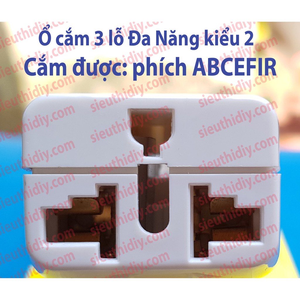 + Ra 3 Ổ Đa Năng ( Ra 3 ĐN ) : cung cấp 3 Ổ Cắm Đa Năng ( 1 Ổ Đa Năng 3 lỗ Kiểu 1 + 1 Ổ Đa Năng 2 Lỗ + 1 Ổ Đa Năng 3 Lỗ Kiểu 2 ).
