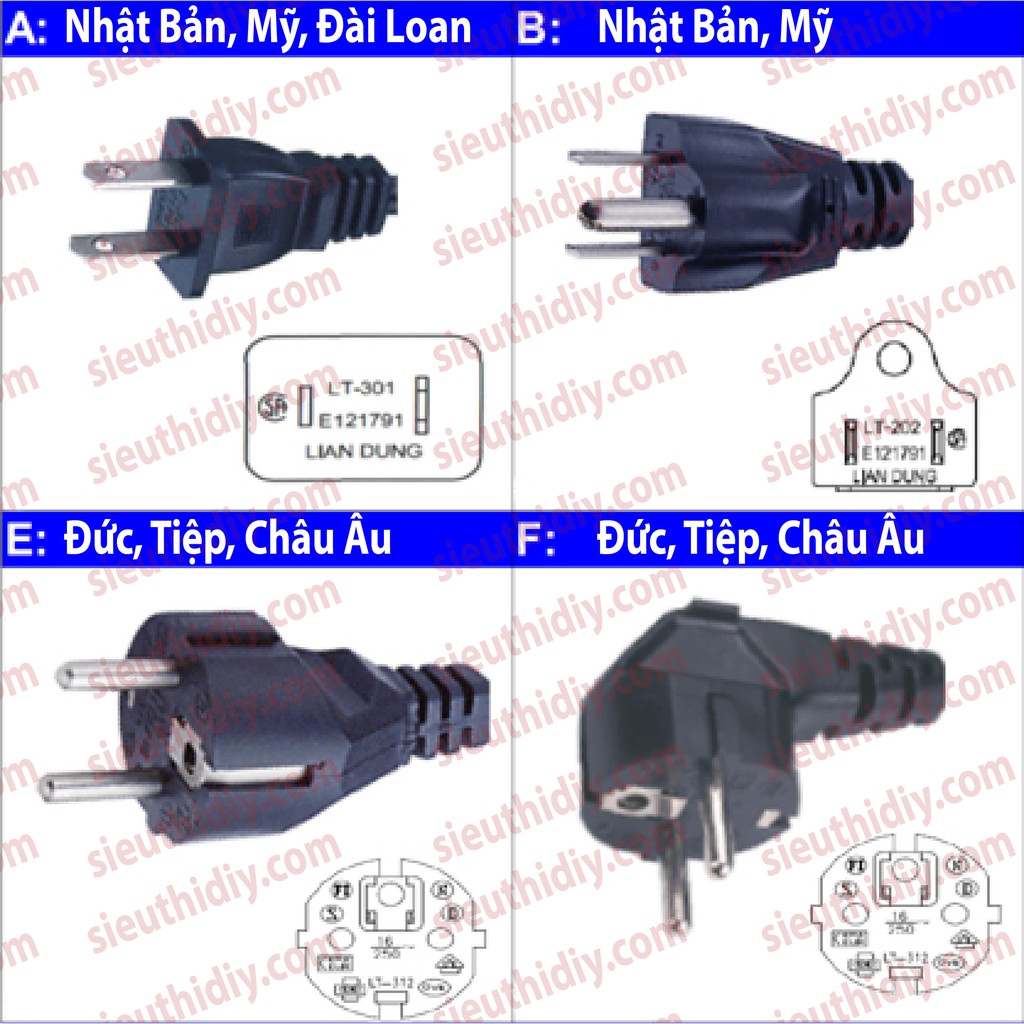 - Các loại phích cắm thông dụng: