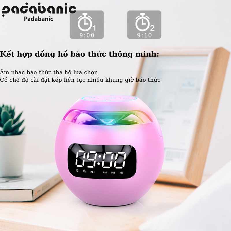 Giới thiệu [ Phiên Bản 2022 ] Loa Bluetooth Padabanic Nhạc Mp3 Thẻ TF / Bluetooth 5.0 / Đài FM / Pin 1400mAh Kiêm Đồng Hồ Báo Thức