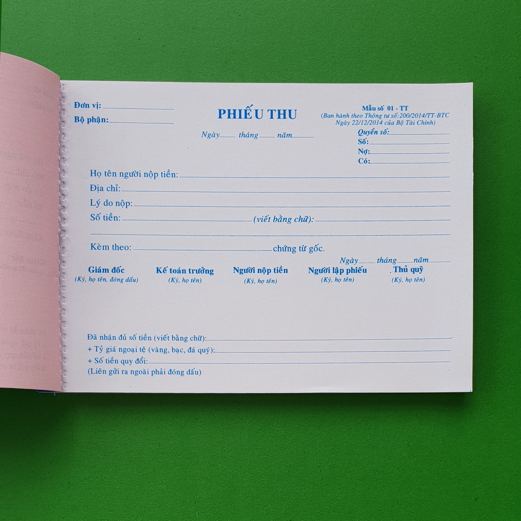 Văn Phòng Phẩm > Sổ & Giấy Các Loại > Giấy In || Phiếu thu 2 liên trắng hồng - Mẫu số 01-TT - Ban hành theo Thông tư số: 200/2014/TT-BTC ngày 22/12/2014Còn hàng