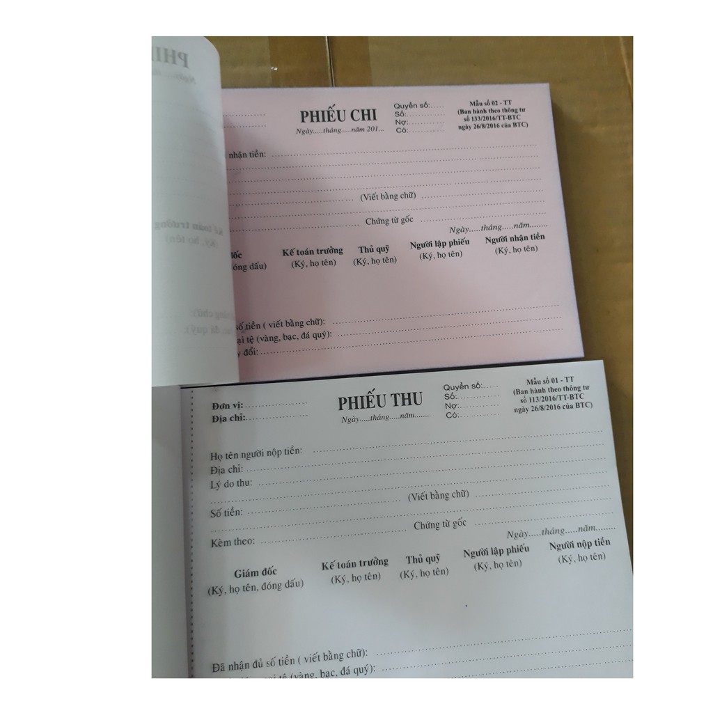 Phiếu thu, chi, nhập kho 2 liên giấy carbon đẹp loại 100 tờ/ quyển