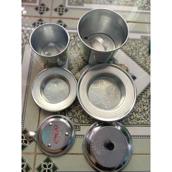 - Phin pha cà phê bằng nhôm 3 size nhỏ, lớn, đại.+ Phin nhỏ dùng cho cà phê một người uống.
