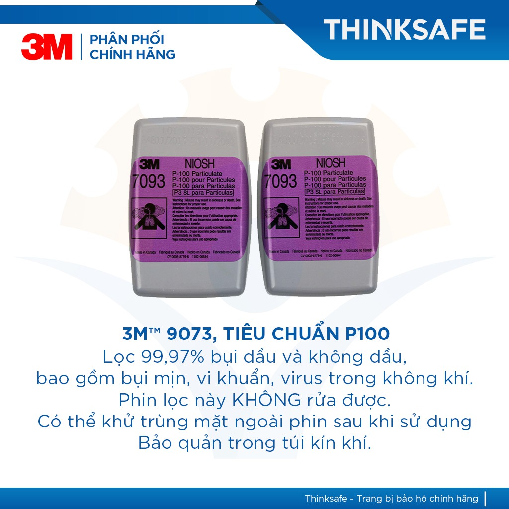 Giới thiệu Phin lọc 3M Thinksafe, chuyên dùng phòng dịch, chống độc, chống giọt bắn, tiêu chuẩn P100/ N95, chính hãng - 3M 7093