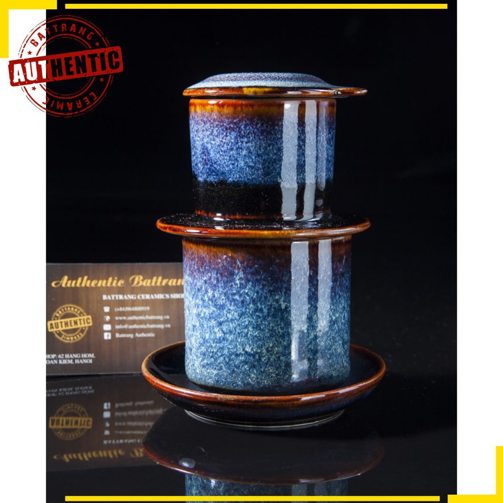 Nếu bạn đang tìm một bộ phin pha cà phê bằng gốm sứ, cực chất và độc đáo bởi màu men và nhiệt độ nung thì đừng quên liên hệ với chúng tôi.Bộ phin gốm sứ được sản xuất tại xưởng gốm sứ Gia Oanh Authentic bat trang, được nung ở nhiệt độ cao 1300 độ C, đảm bảo sản phẩm nét, an toàn không chì và chắc chắn tuyệt đối,