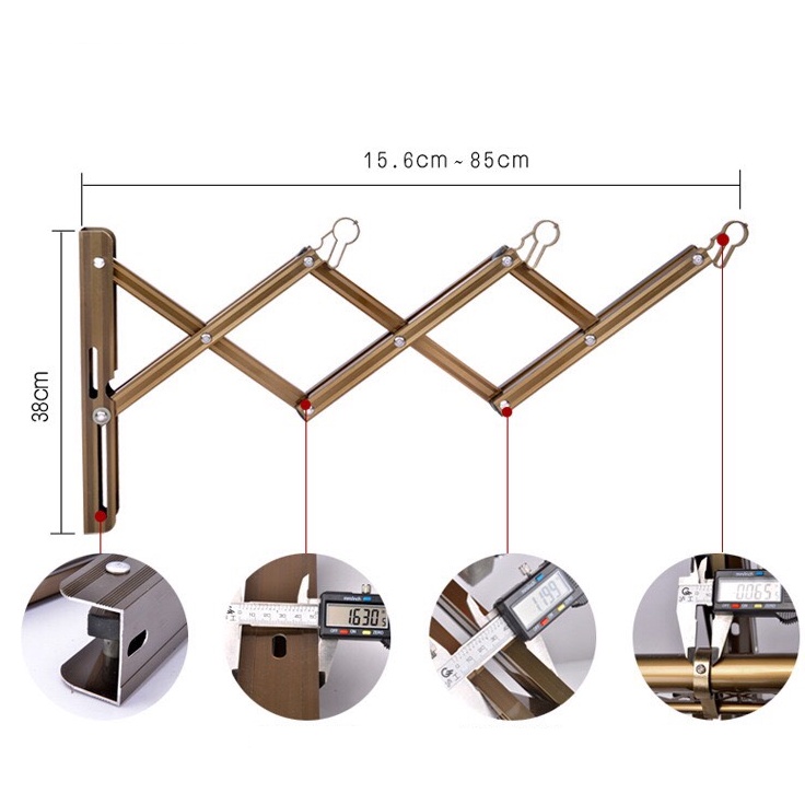 Sản phẩm được làm từ chất liệu inox cao cấp, được lắp ráp với nhau, có thể co giãn dễ dàng, giúp bạn thoải mái phơi quần áo, treo khăn...