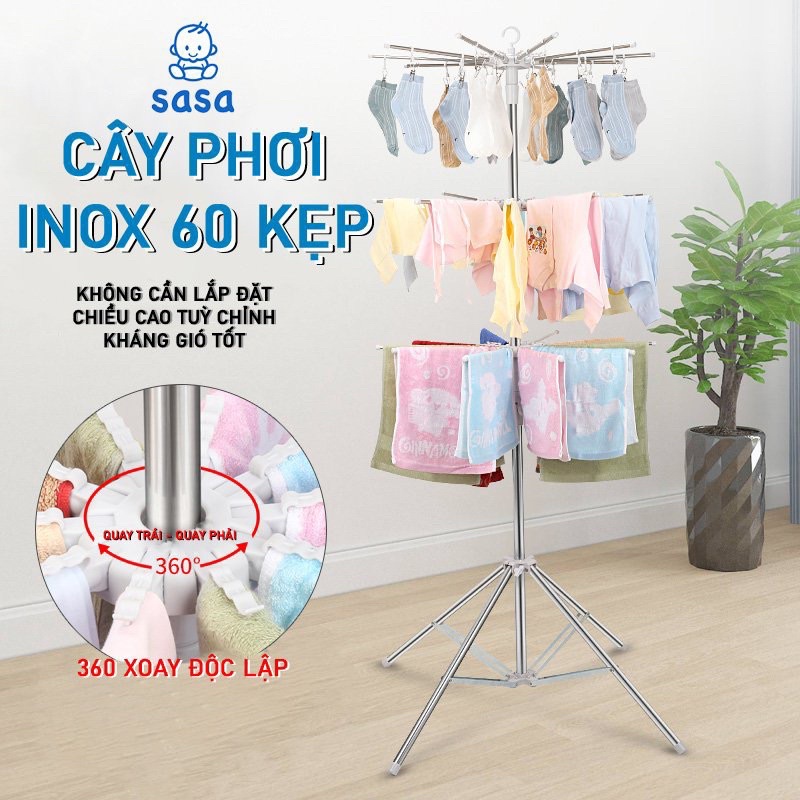 Giới thiệu Cây phơi đồ cho trẻ em, bé sơ sinh bằng inox 3 tầng gấp gọn