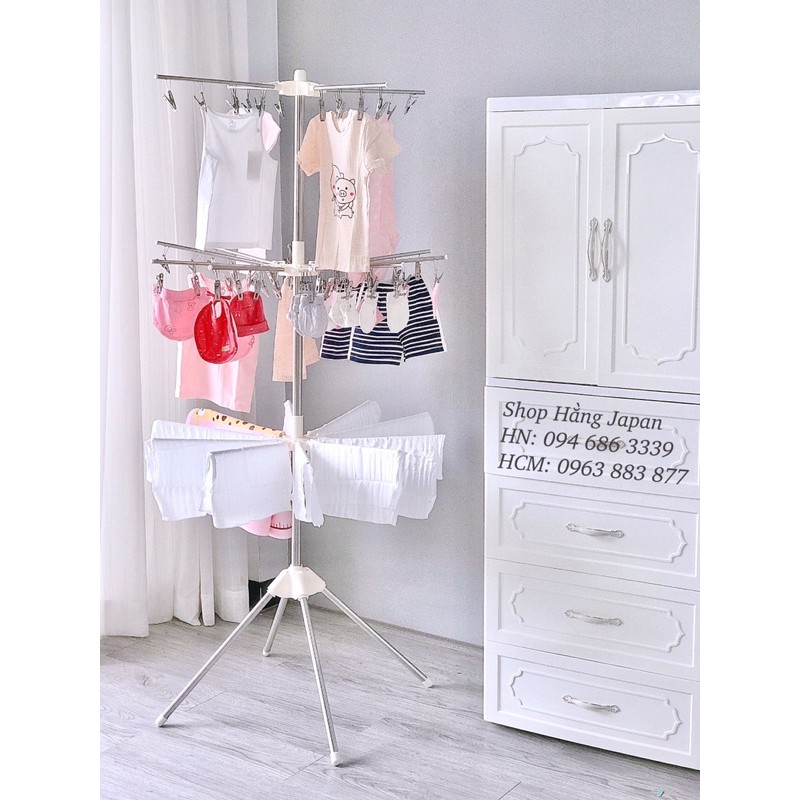 Cây phơi đồ đa năng inox SASA 3 tầng cao cấp hàng chính hãngSản phẩm được làm bằng chất liệu nhựa cao cấp và Inox chống rỉ. Có thể gập gọn lại cất đi dễ dàng. Rất thích hợp với việc treo đồ nhỏ xinh của các bé nha các mẹ.