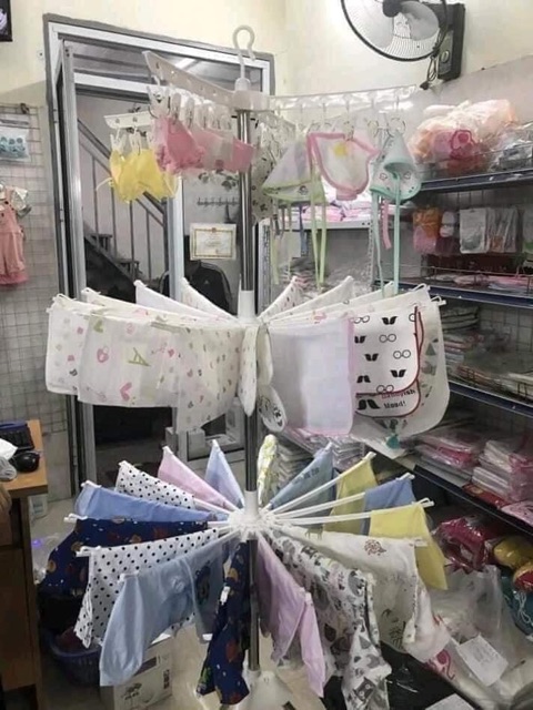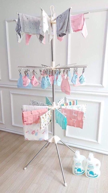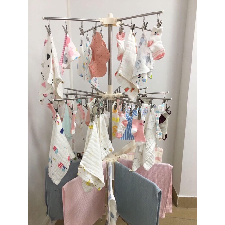 ➡ Bé nhà mình cần lắm 1 cây phơi đồ ntn mẹ nhé. Nhỏ gọn, tiện lợi mà phơi được nhiều đồ cực. Đồ của bé, bao chân bao tay nhỏ xíu phơi kiểu này chẳng sợ thất lạc cái nào ạ.