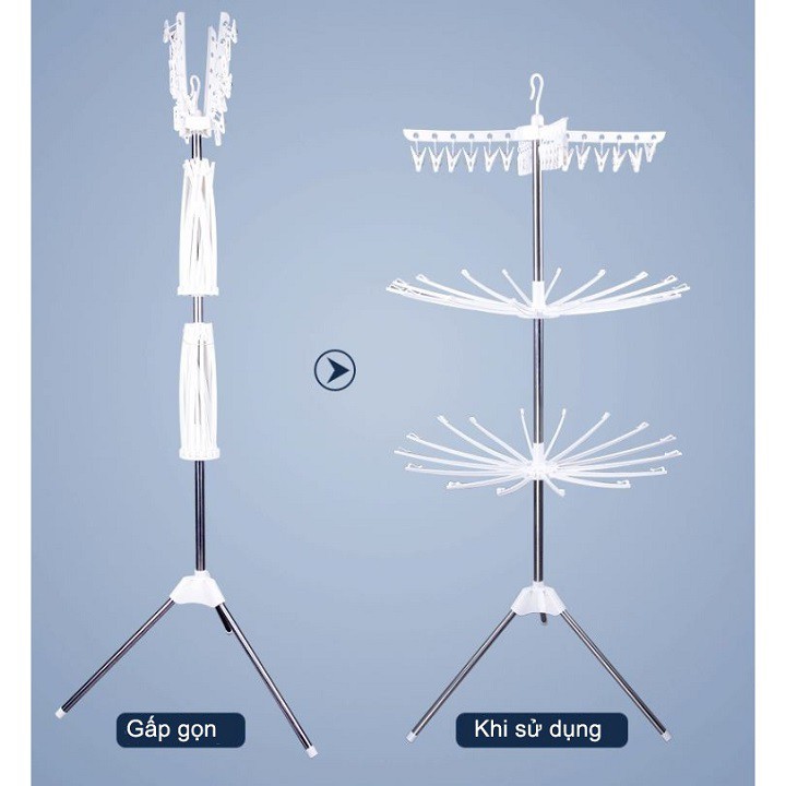Cây phơi quần áo xoay 360 độ gập gọn thông minh- Chất liệu nhựa kết hợp inox cao cấp