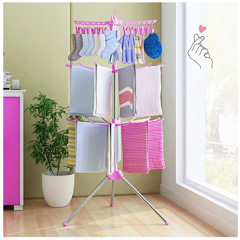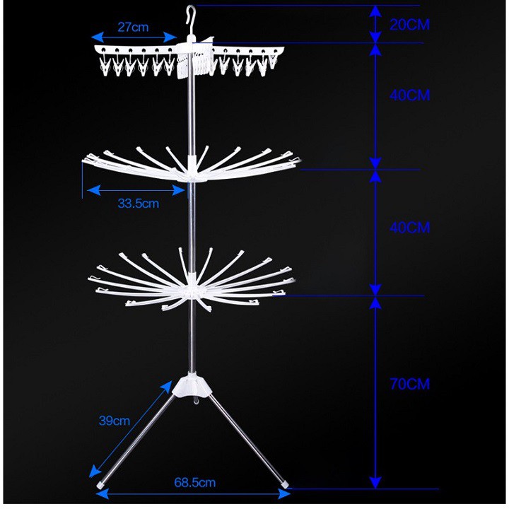 - Cây phơi quần áo 3 tầng với 3 giá phơi đồ cực kì chắc chắn và tiện dụng, có thể gập gọn khi không sử dụng. Sản phẩm có kích thước gọn nhẹ, giúp bạn dễ dàng di chuyển khi cần thiết.