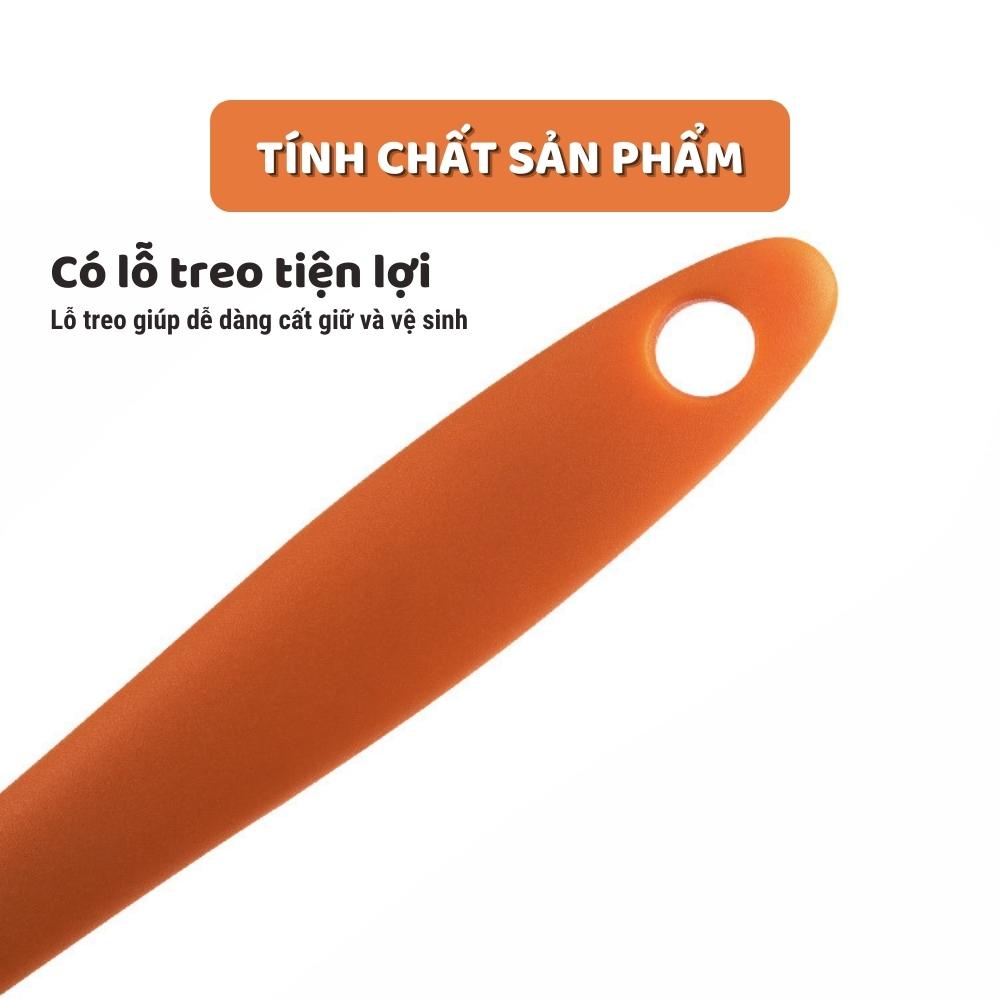 - Phới trộn bột được thiết kế dẹt, thích hợp để vét sạch bột, một bên bo tròn, một bên vuông góc hỗ trợ người dùng lấy hết bột ở mọi vị trí.