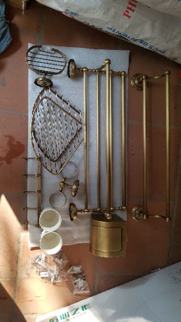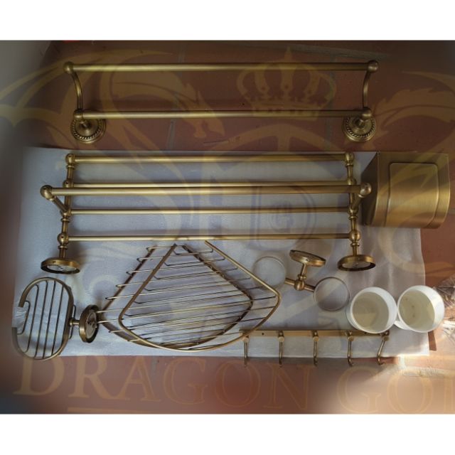 phụ kiện 6 món nhà tắm đồng dragon gold cao cấpKệ nhà tắm 8 món chất liệu đồng tỉ lệ 69% màu vàng giả cổ đem lại vẻ đẹp , độ bền và phù hợp với nhiều không gian phòng tắm