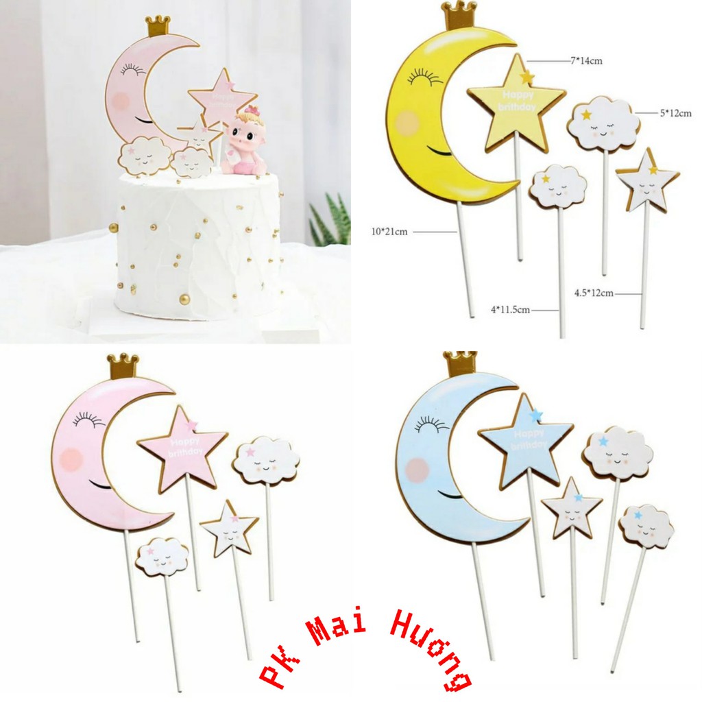 - Xuất sứ: Phụ kiện bánh sinh nhật bánh kem - SET THẺ CẮM GIẤY TRĂNG SAO MÂY