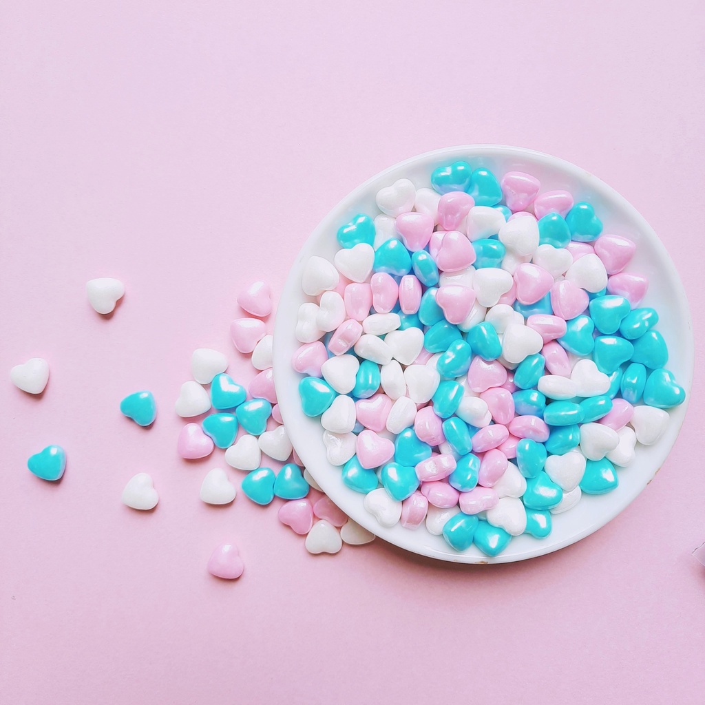 - Xuất sứ: Phụ kiện bánh sinh nhật bánh kem - 120g bi đường tròn, dài, tim, sao nhiều màu lì, bóng