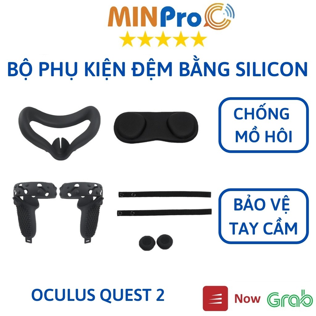 Bộ phụ kiện đệm bằng silicon chống mồ hôi bảo vệ tay cầm chơi game Oculus Quest 2 - MINPRO
