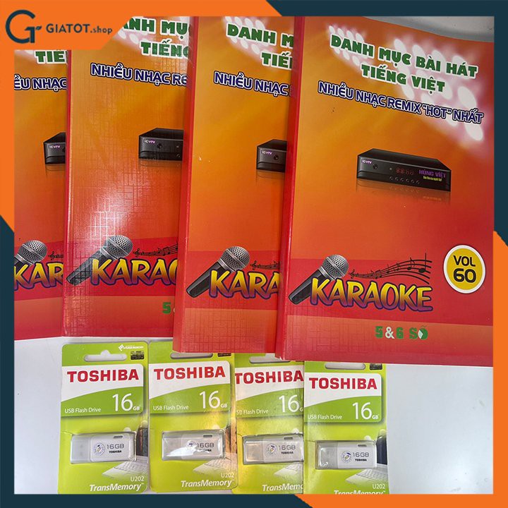 Bao gồm một quển danh sách bài hát băng tiếng việt và một USB toshiba 16G