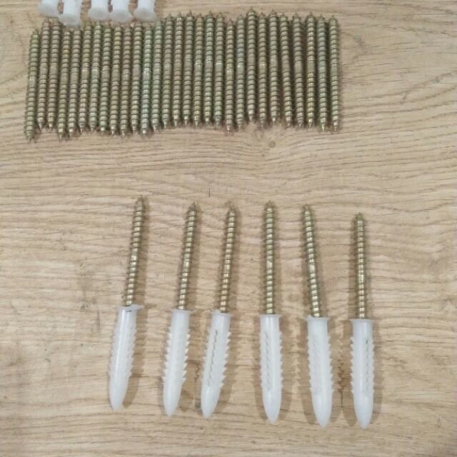 Cách lắp: dùng mũi khoan bê tông phi 10 khoan ngập nở tắc kê, đóng nở vào tường , dùng kìm hoặc khoan văn den vào nở, đóng trực tiếp kệ gỗ vào ren là xong.