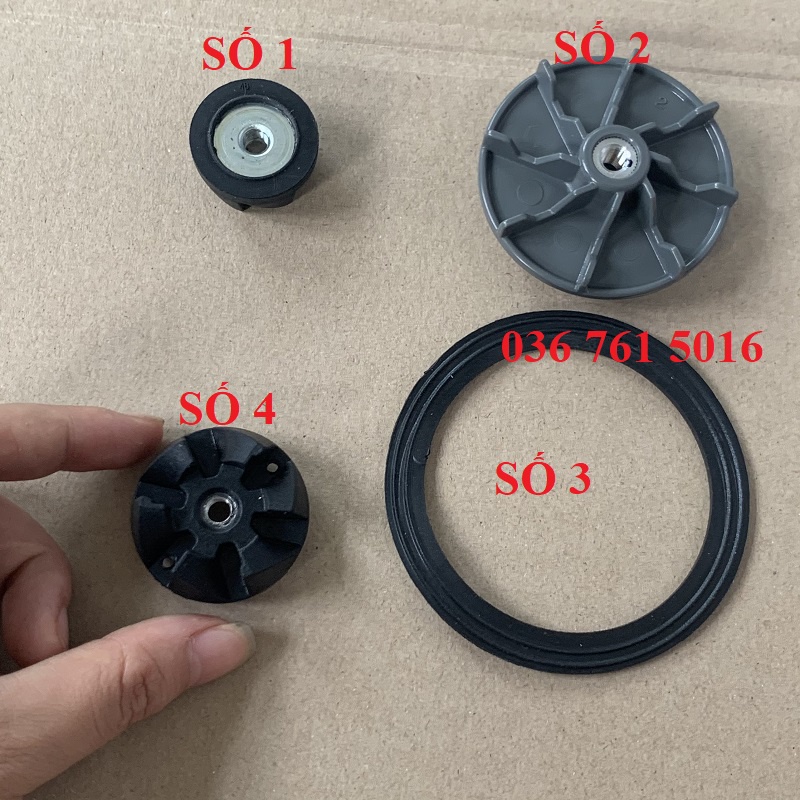 3. Gioăng cối sinh tố: màu sắc- đen, tác dụng chống tràn nước, chất lỏng xuống thân máy trong quá trình sử dụng, lâu ngày bị xơ cứng mất tác dụng cũng nên thay