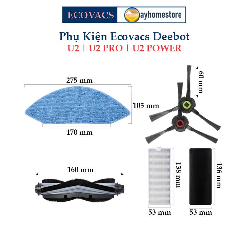 ⭐Phụ kiện thay thế cho Ecovacs Deebot U2 | U2 Pro | U2 Power
