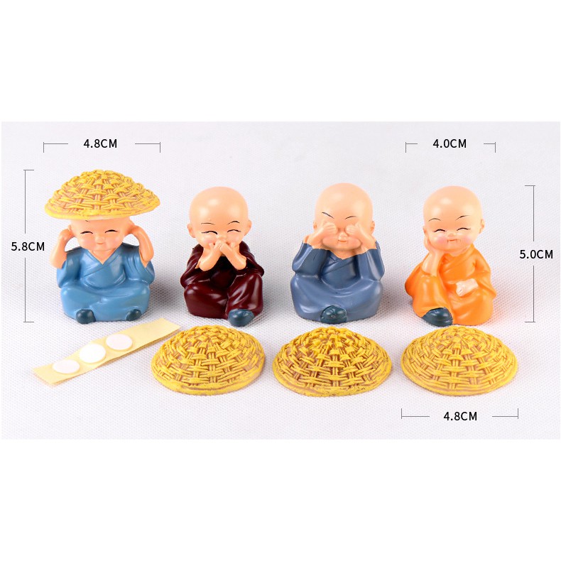 Phụ Kiện Tiểu Cảnh - Bộ Tứ Chú Tiểu Trang Trí Sen Đá, Xương Rồng, Terrarium