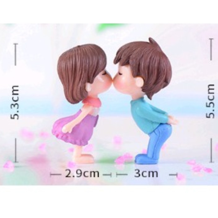 Phụ kiện tiểu cảnh cặp đôi hôn nhau trang trí terrarium, chậu cây mini, sen đá, charm slime