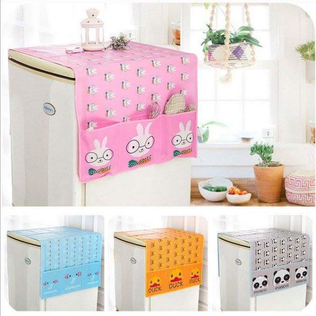 - Với chiếc khăn che “2 trong 1” xinh xắn cùng túi nhỏ tiện dụng 2 bên hông, bạn sẽ không còn lo lắng tủ lạnh nhà mình bị phủ bụi, đồng thời nó cũng giúp đầu tủ lạnh trở thành một nơi trưng bày các vật dụng trang trí dễ thương.