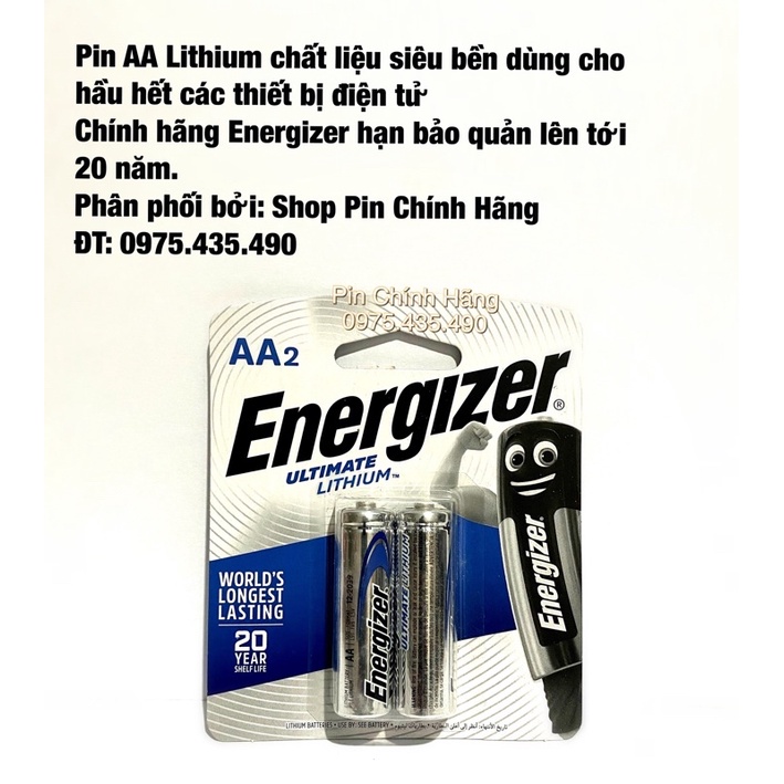 - Loại pin : Pin tiểu Energizer Ultimate Lithium AA (2A) thế hệ mới 9X- Volts : 1.5V