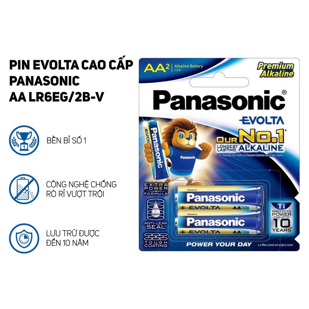 Pin AA Panasonic Evolta cao cấp LR6EG-2B vỉ 2 viên chính hãngPin tiểu AA Panasonic Evolta (Evolution + Voltage) tốt hơn pin Alkaline và là sự lựa chọn thay thế cho pin Lithium.