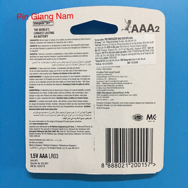 Thương hiệu: EnergizerXuất xứ: Singapore
