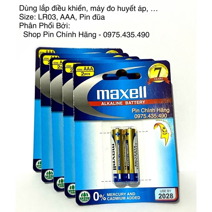 Pin AAA Maxell Alkaline LR03 Chính hãng Vỉ 2 viên Made in Indonesia