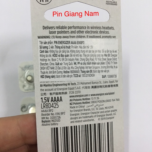 Thông tin sản phẩmThương hiệu: Energizer