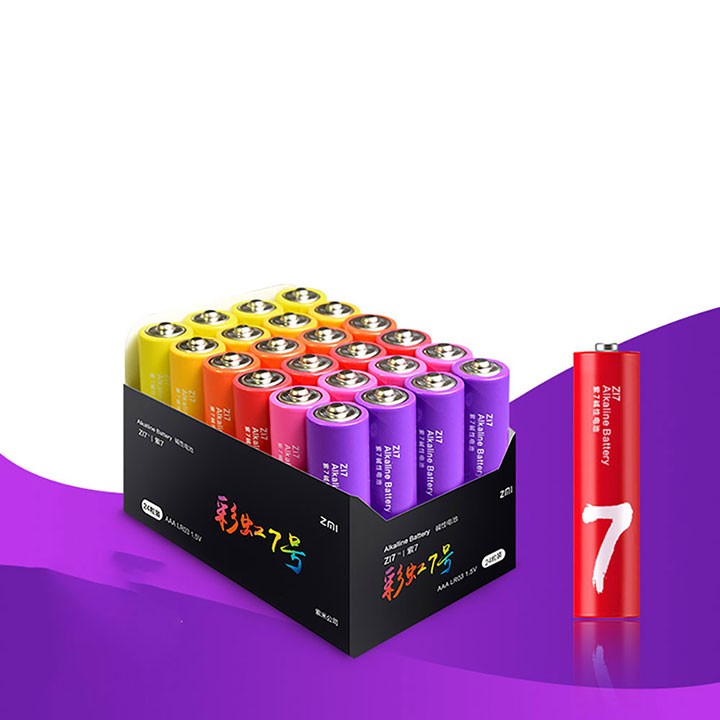 --- Pin cầu vồng ZMI ZI7 AAA724 hộp 24 viênBộ 24 pin AAA số 7 ZMI ZI7 là bộ sản phẩm pin gồm 24 viên AAA sử dụng công nghệ pin Alkaline hiện đại, chất lượng tốt và độ bền cao. Đây sẽ là một lựa chọn tuyệt vời cho bạn để cung cấp năng lượng cho các thiết bị như Remote TV, chuột không dây, đèn pin, quạt mini, đồ chơi...