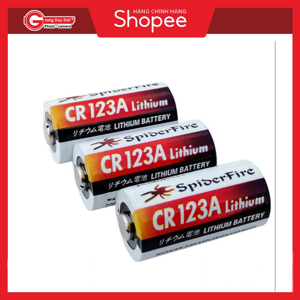 Pin CR123A Spiderfire 3V cho máy ảnhSử dụng cho các thiết bị điện tử dùng cỡ pin cr123A @3V như: máy ảnh, máy quay, máy đo khoảng cách...