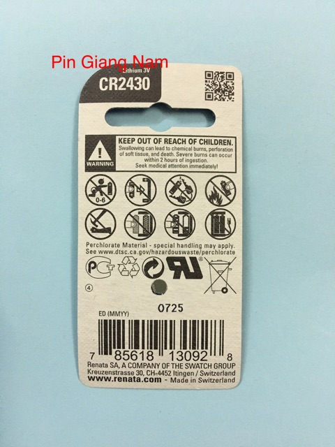 Giới thiệu Pin CR2430 Renata Lithium 3V vỉ 1 viên