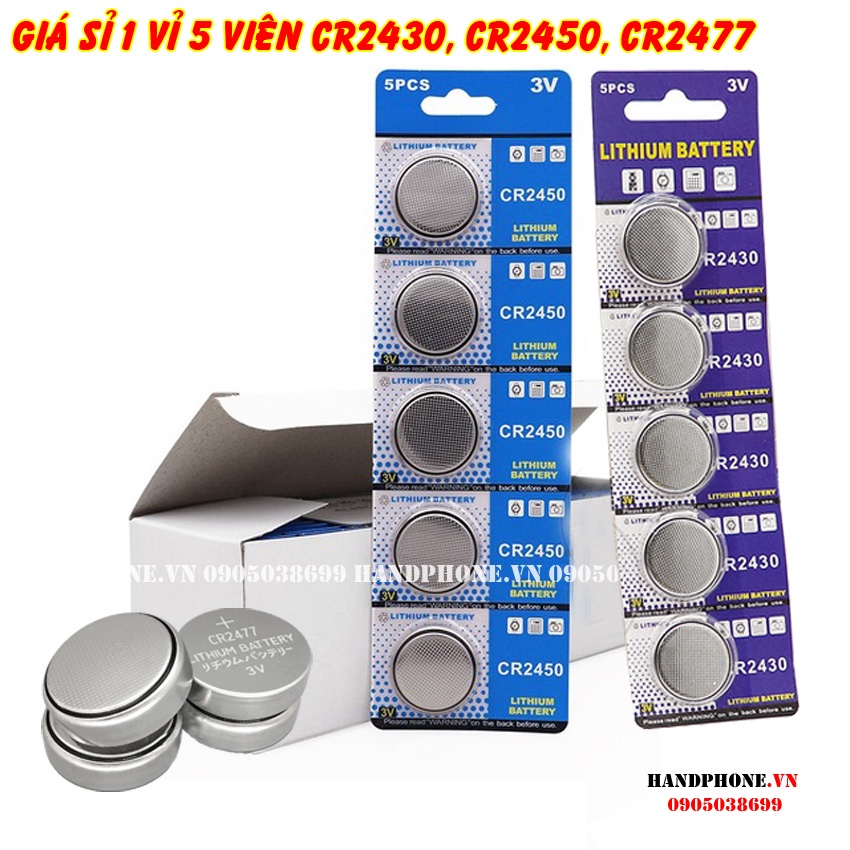Pin cúc Lithium 3V CR2430 CR2450 CR2477 pin nút đường kính 24mm cho Cmos, điều khiển, chìa khóa ô tô, xe máy, cửa cuốn