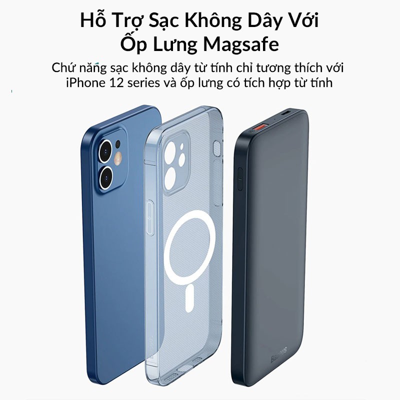 Điện Thoại & Phụ Kiện > Pin sạc dự phòng > 5000 - 10000mAh || Pin Dự Phòng 10000mAh Baseus Sạc Nhanh 20W Tích Hợp Sạc Không Dây Từ Tính Apple Magsafe Dùng Cho iPhone 12Còn hàng