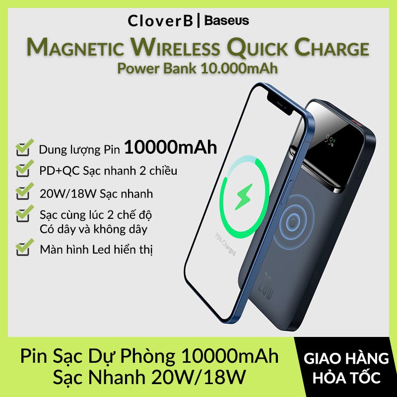 Pin Dự Phòng Không Dây 10000mAh BASEUS Magnetc Wireless Quick Charging, Sạc Nhanh PD 20W, Hỗ Trợ MagSafe Cho iPhone 13