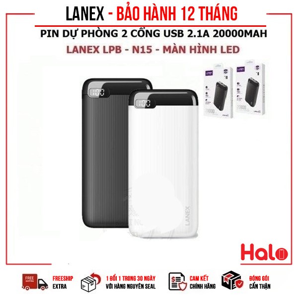 Điện Thoại & Phụ Kiện > Phụ kiện > Sạc dự phòng & Pin > Sạc dự phòng || Pin dự phòng 2 USB 2.1A 20000mAh LANEX LPB-N15-Màn hình LEDCòn hàng